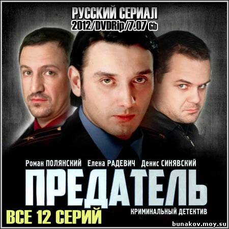 Название: Предатель - Все 12 серий Год выхода: 2012 Жанр: Детектив, Боевик Режиссер: Станислав Титаренко В ролях: Роман Полянский, Елена Радевич, Денис Синявский, Андрей Ребров, Дмитрий Сутырин, Сергей Колос, Анатолий Журавин, Анна Арефьева, Яков Шамшин, Олег Куликович Некогда правильный опер Игорь Ребров, становится «оборотнем в пагонах». Игорь соглашается помочь в освобождении криминального авторитета, но ведет это дело несговорчивая и принципиальная Ольга Баренцева. Подбираясь к ней поближе, Игорь не сразу понимает, насколько Ольга ему дорога. Реброву приходится выбирать…