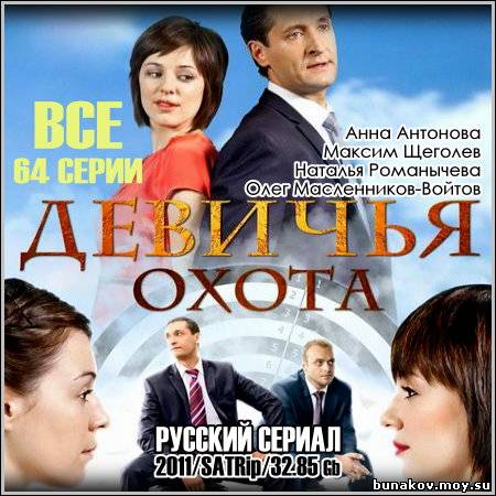 Название: Девичья охота - Все 64 серии Год выхода: 2011 Жанр: Драма, Мелодрама Режиссер: Сергей Мезенцев, Денис Карро, Игорь Ларин, Уланбек Баялиев, Александр Назаров В ролях: Наталья Романычева, Олег Масленников-Войтов, Анна Антонова, Максим Щеголев, Дмитрий Калистратов, Дмитрий Наумов, Андрей Белозеров, Александр Журман, Евгения Каверау, Алексей Афанасьев, Андрей Бирин, Константин Столяров, Наталия Рыжих Молоденькая девушка решает отомстить известному бизнесмену за нанесенное ей оскорбление. Для этого героиня фильма устраивается на работу в компанию, где ее обидчик является совладельцем. Постепенно она прибирает компанию к своим рукам. Но, вот незадача – девушка влюбляется в обоих совладельцев компании…