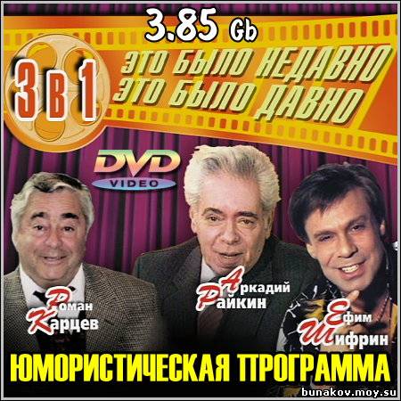 Название: Это было недавно, это было давно. Райкин, Карцев и Шифрин Год выхода: Разные Жанр: Телепрограмма, Юмор Режиссер: Сергей Сатыренко В ролях: Зиновий Герд, Роман Карцев, Аркадий Райкин, Ефим Шефрин Русская юмористическая программа с участием известных комиков – Ефима Шифрина, Аркадия Райкина, Романа Карцева, Зиновия Герда.