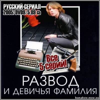 Название: Развод и девичья фамилия - Все 5 серий Год выхода: 2005 Жанр: Детектив, Мелодрама Режиссер: Андрей Праченко В ролях: Татьяна Колганова, Олег Фомин, Алексей Петражицкий, Людмила Игнатенко, Александр Наумов, Юлия Типанова, Виктор Сарайкин, Наталия Житкова, Олеся Жураковская, Олег Замятин, Прохор Зикора, Алена Алымова, Олег Савкин, Сергей Пономаренко, Джемал Тетруашвили, Наталья Коваль, Виктор Щур, Андрей Павленко, Юрий Потапенко, Дмитрий Базай, Виктор Демерташ, Татьяна Камбурова, Нина Нижерадзе, Сергей Завалий, Александр Данильченко У журналистки еженедельника «Старая площадь» Киры Ятт не сложилась личная жизнь. После пятнадцати лет совместной жизни, она разводится с мужем. Единственный сын Киры тяжело переносит развод родителей и пытается примирить их, но тщетно. Может быть, так бы все и продолжалось, если бы не ужасное происшествие – убийство Кирыного начальника, в котором ее и подозревают…