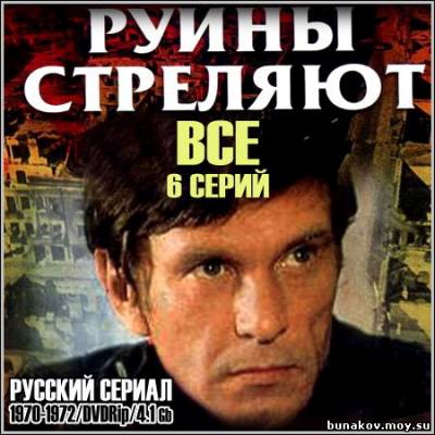 Название: Руины стреляют - Все 6 серий Год выхода: 1970-1972 Жанр: Военный, героико-приключенческий, ВОВ Режиссер: Виталий Четвериков В ролях: Игорь Ледогоров, Светлана Коркошко, Владимир Козел, Михаил Погоржельский, Алексей Чернов, Лев Золотухин, Леонид Данчишин, Михаил Селютин, Нина Сазонова, Владимир Поночевный, Виктор Тарасов, Антанас Шурна, Мария Захаревич, Татьяна Алексеева, Жаннета Четверикова-Друцкая, Августин Милованов, Аудрюс Хадаравичюс, Геннадий Гарбук, Юрий Ступаков, Ростислав Шмырев, Федор Никитин, Александр Хабалов, Григорий Гай, Юрий Горобец, Борис Владомирский, Хенрикас Кураускас, Иозас Ригертас, Игорь Стариков, Павел Кормунин, Любовь Черновол, Викторас Плютс, Елена Вановская, Лаймонас Норейка, Светлана Некипелова, Бирута Докальская, Здислав Стомма, Борис Юрченко Документальная повесть Ивана Новикова послужила основой для художественного сериала «Руины стреляют», в котором идет речь о героях Минского подполья в годы Великой Отечественной войны. В самом центре сюжета оказываются реальные люди: инженер Исай Казинец, военнослужащий Иван Кабушкин, студент-журналист Владимир Омельянюк, медик Евгений Клумов, партийный и советский работник Сергей Благоразумов и другие. Главным оружием этих людей была большая ненависть к оккупантам…
