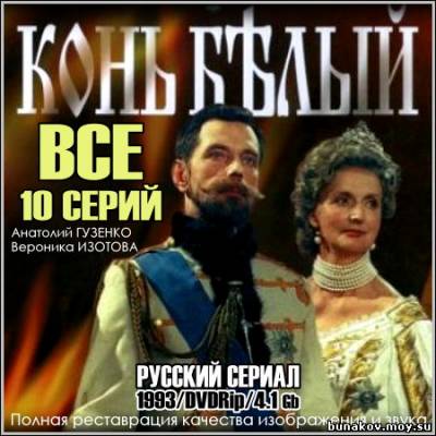 Название: Конь белый - Все 10 серий Год выхода: 1993 Жанр: Драма, Военный, История Режиссер: Гелий Рябов В ролях: Анатолий Гузенко, Вероника Изотова, Владимир Симонов, Владимир Белоусов, Николай Кочегаров, Иван Краско, Геннадий Глаголев, Элина Суворова, Екатерина Беликова, Николай Дик, Владимир Князев, Анатолий Петров, Анатолий Рудаков, Валерий Доронин, Владимир Дюков-Самарский, Александр Балуев, Игорь Карташёв, Гелий Сысоев, Ромуальд Макаренко, Евгений Миненко, Анатолий Гаричев, Людмила Аржаникова, Алексей Довбыш, Элеонора Казанская, Анна Запрягалова, Анна Афанасьева, Юлия Ауг, Надежда Филатова, Геннадий Воропаев, Елена Кривец, Евгений Кузнецов (III), Алексей Афанасьев, Галина Чигинская, Сергей Полежаев, Валерий Кувакин, Юрий Дедович, Михаил Глазунов, Николай Игнатьев, Андрей Краско, Дмитрий Поддубный Вам представлен сериал "Конь белый". Действия фильма разворачиваются в России накануне революции. Трагическая судьба адмирала Колчака, который командовал флотом. Жуткая смерть всей царской семьи и обстоятельства расследования ее гибели, проводимые по поручению Колчака.