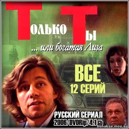Название: Только ты... или богатая Лиза - Все 12 серий Год выхода: 2004 Жанр: Мелодрама Режиссер: Нана Джорджадзе В ролях: Ирина Гринева, Анна Ардова, Виктор Низовой, Евгения Дмитриева, Валерий Боровинских, Саид Багов, Юрий Беляев Перед Вами российский телесериал "Только ты... или богатая Лиза". По жанру это обычная мелодрама, по сюжету – любовная история с типичным треугольником в отношениях. Главная героиня, воспитанная бабушкой девушка, положительная и очень наивная, влюбляется. Ее избранник - красавец и сердцеед, и похоже, что любовь взаимна, но вдруг ее герой выбирает брак по расчету и женится на подруге девушки. Главная героиня никак не может смириться с этой утратой. Она пробует любыми способами вернуть любимого.