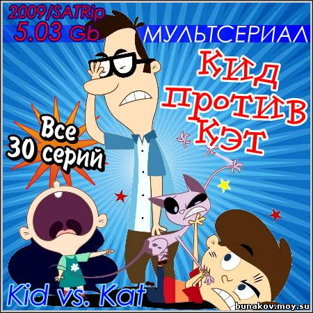 Название: Кид против Кэт - Все 30 серий Оригинальное название: Kid vs. Kat Год выхода: 2009 Жанр: Мультсериал, Семейный Режиссер: Роб Боутилиер В ролях: Эрин Мэтьюс, Кэтлин Барр, Тревор Дэвал Перед Вами комедийный мультсериал «Кид против Кэт» (Kid vs Kat). Это история об простом мальчишке по имени Куп. Его жизнь круто меняется после появления у него в доме кота. Дело все в том, что кот этот – совершенно никакой не кот, а пришелец с другой планеты. Парень считает, что инопланетянин вздумал захватить нашу планету, в то время как сам кот вначале просто мечтал о том, как бы побыстрее попасть домой. И в то время как Куп разрабатывает хитрые планы по превращению жизни кота в ад, кошачий пришелец вполне нормально живет в доме у Купа и его сестренки Мили. Этот герой мультфильма даже пробует донести до своих далеких собратьев на другой планете, какая тут вкусная кошачья еда.