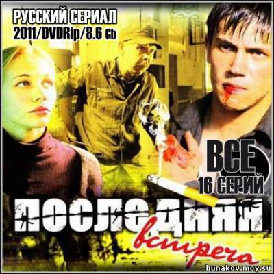 Название: Последняя встреча - Все 16 серий Год выхода: 2011 Жанр: Детектив Режиссер: Александр Аравин В ролях: Валентин Смирнитский, Михаил Козаков, Евгения Кудинова, Сергей Перегудов, Валерий Баринов, Александр Половцев, Владимир Бирюков, Леонид Бичевин, Игорь Головин, Николай Козак, Равшана Куркова, Александр Удалов, Константин Адаев, Витас Эйзенах, Антон Чернов, Игорь Лифанов, Дмитрий Ульянов, Полина Сидихина, Евгений Сидихин, Олег Волков, Александр Примаченко, Евгений Булычев, Татьяна Запольнова, Андрей Лёвин, Анастасия Аравина, Светлана Устинова, Александр Лазарев, Андрей Папанин, Антон Багров, Родион Антонкин, Федор Прожога, Вадим Лымарь, Игорь Чигирь, Юлия Морозова, Андрей Балашов, Юрий Зур, Сергей Петров, Татьяна Ермилова Детективный сериал «Последняя встреча» – история, которая началась в 80-е годы. Главные герои – четверо молодых людей, которые познакомились и сразу подружились во время учебы в школе КГБ. С того времени их судьбы сложились по-всякому – кто-то работает за границей, а кто-то по-прежнему живет и работает в родной стране. Между тем, впереди их ожидает неизбежная встреча, потому что героев связывает секрет, о котором знают лишь они.