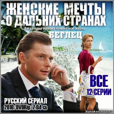 Название: Беглец (Женские мечты о дальних странах) - Все 12 серий Год выхода: 2010 Жанр: Криминальная мелодрама Режиссер: Владимир Шевельков В ролях: Илья Носков, Марина Петренко, Елена Радевич, Константин Соловьёв, Леонид Громов, Александр Воробьёв, Павел Сборщиков, Сергей Фролов, Александр Фисенко, Василий Мищенко, Алла Юганова, Анатолий Дзиваев, Наталья Гудкова, Игорь Недосейкин, Александр Шишкин Многие женщины мечтают о дальних странах, островах, пальмах и веренице белых пляжей… Именно такие мечты были у героини сериала "Беглец" (Женские мечты о дальних странах), и они круто поменяли жизнь одного весьма преуспевающего молодого человека – Вадима Чебакова. Он был молод, хорош собой, хорошо образован, умен и имел прекрасную работу. Как-то раз Вадиму пришлось везти немалые деньги в поезде в другой город. Его любимая Галя очень просила взять ее с собой – отличная возможность провести вместе время, тем более, что едет парень на морское побережье. Вадим возражал – нельзя, строгая инструкция. И все же пустил Галю к себе в купе. Пришел в себя он без документов и денег на какой-то небольшой станции… Теперь Вадима разыскивает бывший босс, очень серьезный человек, убежденный, что это он похитил деньги. А сам он ищет Галю и того, кто помог ей совершить такое ловкое и коварное ограбление…