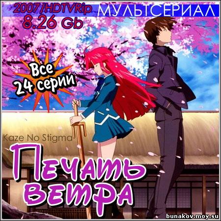 Название: Печать ветра Оригинальное название: Kaze No Stigma Год выхода: 2007 Жанр: Приключения, Мистика, Романтика, Комедия Режиссер: Дзюнъити Саката В ролях: Дайсукэ Оно, Аюми Фудзимура, Рика Моринага, Саяка Охара, Юй Макино, Сидзука Ито, Юка Инокути, Масаки Тэрасома, Рикия Кояма, Акэно Ватанабэ, Аюми Цудзи, Тиаки Такахаси, Канако Сакай, Кэй Синдо, Кэн Сирояма, Косукэ Ториуми, Мами Косугэ Японский мультсериал «Печать ветра» («Kaze No Stigma») – это история о Кадзума Каннаги, который потерпел поражение в сражении за право наследовать Энрайха – меч, передаваемый по наследству. Интересные путешествия героя приводят его к новым силам, новой любви и многочисленным переживаниям. Его выгоняют из семьи, но он не опускает руки и помогает людям деньгами, а позже возвращается домой под новым именем.