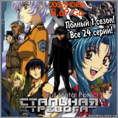 Название: Стальная тревога! Оригинальное название: Full Metal Panic! Год выхода: 2002 Жанр: Мультсериал, Приключения, Комедия, Романтика Режиссер: Койти Тигира В ролях: Томокадзу Сэки, Сацуки Юкино, Юкана Ногами, Синъитиро Мики, Митико Нэя, Акио Оцука, Масахико Танака, Икуэ Кимура, Мамико Ното, Рио Нацуки, Томомити Нисимура Перед Вами мультсериал "Стальная тревога!" (Full Metal Panic!). Притворяясь помешанным на войне, одноклассник девушки Канаме Тидори, весьма предприимчивый Сосуке Сагара оберегает ее от нападок террористической организации, которая убеждена, что Канаме имеет уникальные способности и хочет применять это в своих интересах. Сосуке – агент сверхсекретной военизированной организации МИФРИЛ, и его цель уберечь свою подопечную так, чтобы она не узнала правду. Только получится ли это?
