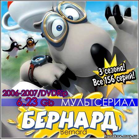 Название: Бернард (Медведь Бернард) Оригинальное название: Bernard Год выхода: 2006-2007 Жанр: Мультсериал, Семейный, Комедия, Детский Режиссер: Клаудио Бьерн Лливирья, Хосе Луис Уча Мультсериал «Бернард» (Bernard) рассказывает о приключениях белого медведя Бернарда. Забавный и нелепый Бернард обожаем и детьми, и даже взрослыми, а сам он не мыслит жизни без приключений и путешествий. Правда, и то, и другое все время оборачивается для Бернарда самыми различными неприятностями. Белому медведю просто фатально не фартит: за какое бы дело Бернард ни брался, оно непременно оборачивается для него особым испытанием.