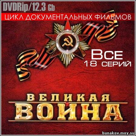 Название: Великая война - Все 18 серий Год выхода: 2011 Жанр: Документальный, Познавательный, Военный, Кинохроника, История Режиссер: Анна Граждан В ролях: Евгений Синчуков, Анатолий Богуш Грандиозный проект документальных фильмов "Великая война" рассказывает о ключевых сражениях и событиях Великой Отечественной войны. Уникальность данного проекта заключается в использовании компьютерной графики в сочетании с кинохроникой военных лет. Благодаря современным технологиям зритель имеет возможность, с одной стороны, разобраться в подробностях событий, с другой, - в полной мере почувствовать драматизм и масштабность великой войны.