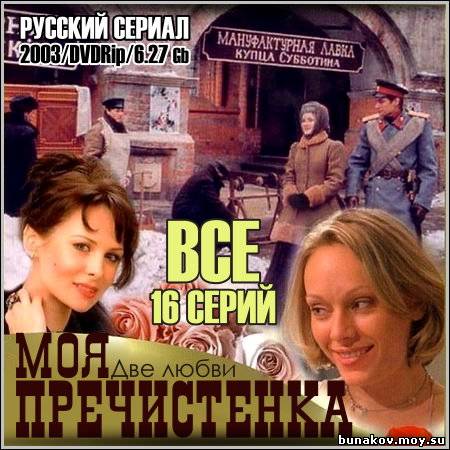 Название: Моя Пречистенка (Две любви) - Все 16 серий Год выхода: 2003 Жанр: Mелодрама Режиссер: Людмила Гладунко, Борис Токарев В ролях: Александр Волков, Анна Казючиц, Александр Ефимов, Валерий Баринов, Екатерина Аманова, Анна Арланова, Юрий Брешин, Сергей Вершинин, Павел Дроздов, Егор Клейменов, Екатерина Климова, Дмитрий Кознов, Ольга Ломоносова, Алексей Макаров, Константин Милованов, Виталий Михальцов, Александр Мякушко, Ольга Погодина, Михаил Ремизов, Анастасия Савосина, Евгений Самарин, Руслан Северин, Янина Соколовская, Борис Токарев, Алексей Троценко, Виктор Фалалеев, Светлана Ходченкова, Александр Цуркан, Алексей Шутов, Владимир Яглыч, Александр Рапопорт, Олег Кассин Действие сериала "Моя Пречистенка" (Две любви) начинается в последний день уходящего XIX века и завершается в канун XXI. В самом центре сюжета – судьбы трех офицеров, которым предстоит пережить революцию, гражданскую войну, эмиграцию, годы сталинских репрессий. И, безусловно, это фильм о любви. Три молодых офицера – жандармский ротмистер Жорж Надеин, князь Александр Репнин и Павел Куратов весело встречают Новый 1900 год и Новый ХХ век. Репнин собирается сделать предложение Софи – сестре своего друга Павла Куратова. Надеин женат на восходящей звезде МХТ красавице еврейке. Во время праздничного фейерверка загорается флигель, в котором живет белошвейка Настя. Рискуя своей жизнью, девушку спасает из огня молодой князь. Они целуются около горящего дома. Это видит Жорж Надеин и принимает решение сохранить это в секрете. Все же отношения Насти и Алекса становятся известны Павлу и его сестре Софи, которая сильно любит Алекса. Оскорбленный Павел вызывает друга на дуэль.