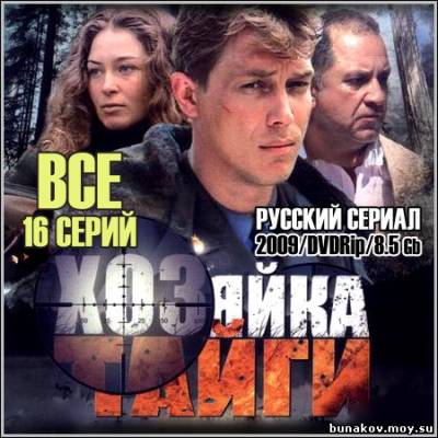Название: Хозяйка тайги - Все 16 серий Год выхода: 2009 Жанр: Боевик, Триллер Режиссер: Борис Казаков (II) В ролях: Марина Казанкова, Александр Бухаров, Леонид Тимцуник, Рамиль Сабитов, Владимир Стержаков, Юрий Шлыков, Георгий Штиль, Владимир Гусев (II), Александр Ильин, Татьяна Кравченко, Роман Агеев, Анатолий Кот, Василий Мищенко, Сергей Паршин, Георгий Николаенко, Борис Невзоров, Петр Кислов, Максим Коновалов, Игорь Арташонов, Габриэлла Мариани, Марина Яковлева и др. Действия в сериале «Хозяйка тайги» проходят на крайнем Севере, на территории государственного заповедника и районах, где ведутся золотодобычи. Охранник золотоперерабатывающего предприятия Константин и егерь Василиса по воле случая оказались втянутыми в грязные игры местной элиты. Им нужно сделать весьма нелегкий выбор: закрыть глаза на разграбление родного края или бороться с риском для жизни. Сильные характеры, северная природа и совсем неожиданная развязка...